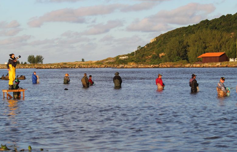 Parceria com botos ajuda homens na pesca das tainhas